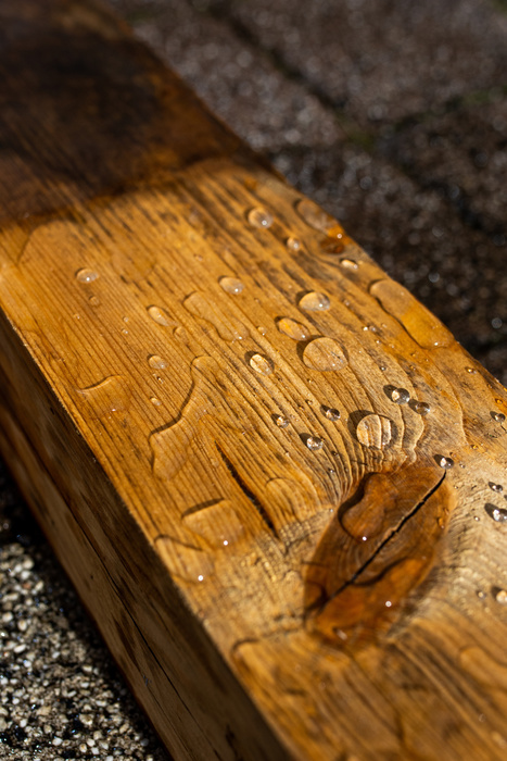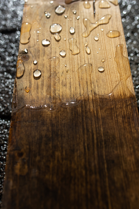 Odšeděné a hydrofobně ochráněné dřevo / z poloviny pro znázornění rozdílu/