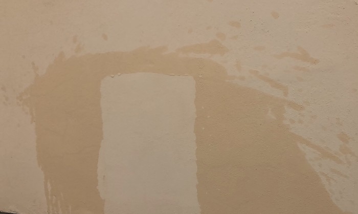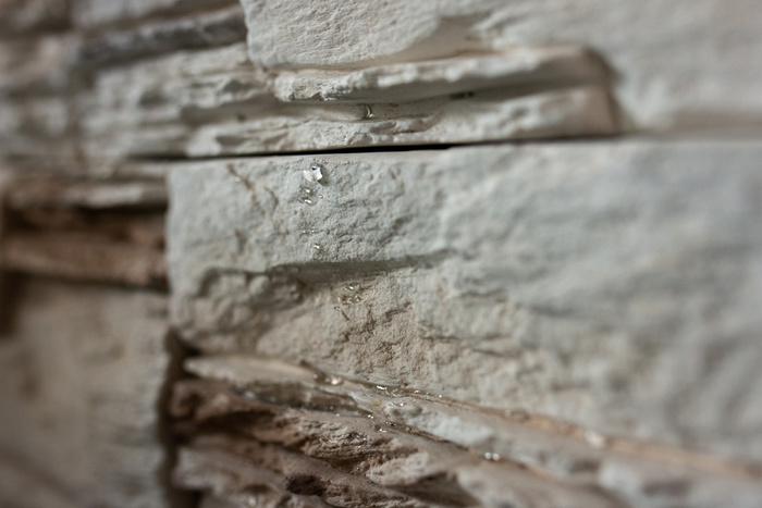 Hydrofobně ochráněná fasáda /střed pro znázornění rozdílu/